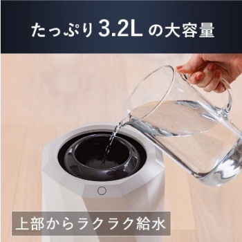 タンク水残量が一目でわかるインジケーターや、真上から水を注げる便利な設計はそのままに、湿度や運転モード、給水タイミング等が一目で確認できるよう、上部液晶モニターを設置しました。また、水洗いできるフィルターは本体に設置しやすい形状にすることで、お手入れ時の小さなストレスを無くしました。